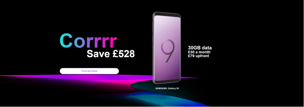 Samsung Galaxy S9, 30GB data, £30/month & £79 upfront